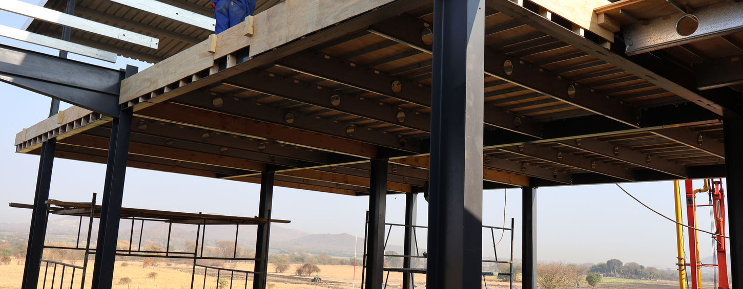 The construction of the clubhouse floor for the pavilion at Academy for Christ, Brits, presented significant challenges. The slab was located 9 meters in the air on a steel beam structure, demanding a solution that prioritized worker safety, required minimal on-site resources, and could be executed by a team with minimum skilled labour.